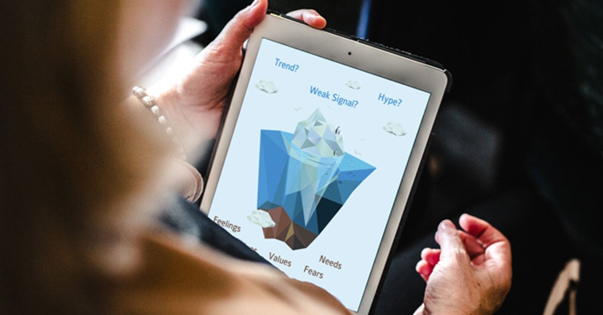 Verknüpft man diese Denkweise mit der Trendhierarchie – bestehend aus Mega-, Makro- und Mikrotrends – erhält man ein differenziertes Bild des Eisbergmodells.