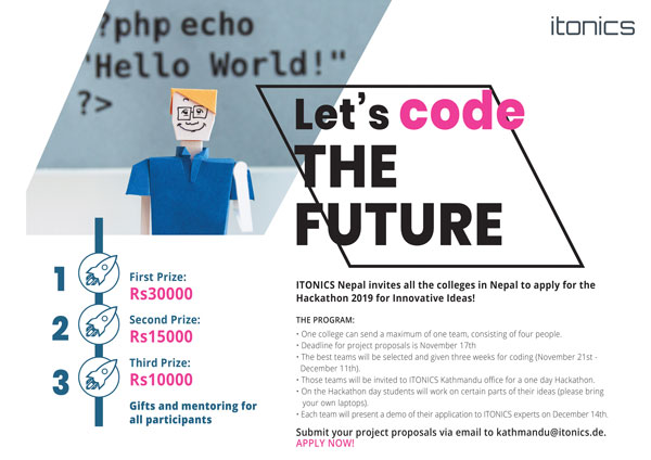 Auch in diesem Jahr stellte ITONICS Nepal erneut ein großes Projekt auf die Beine, um die studentische Coding-Community, lokale Softwareentwicklung und MINT-Fächer in Kathmandu zu unterstützen und zu fördern – der ITONICS Hackathon für innovative Ideen.